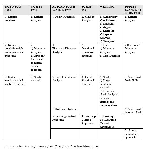 [2] Corbluth (1975:277) noted that the ESP approach had come to the fore ‘under pressure of certain acute needs in the developing world’.